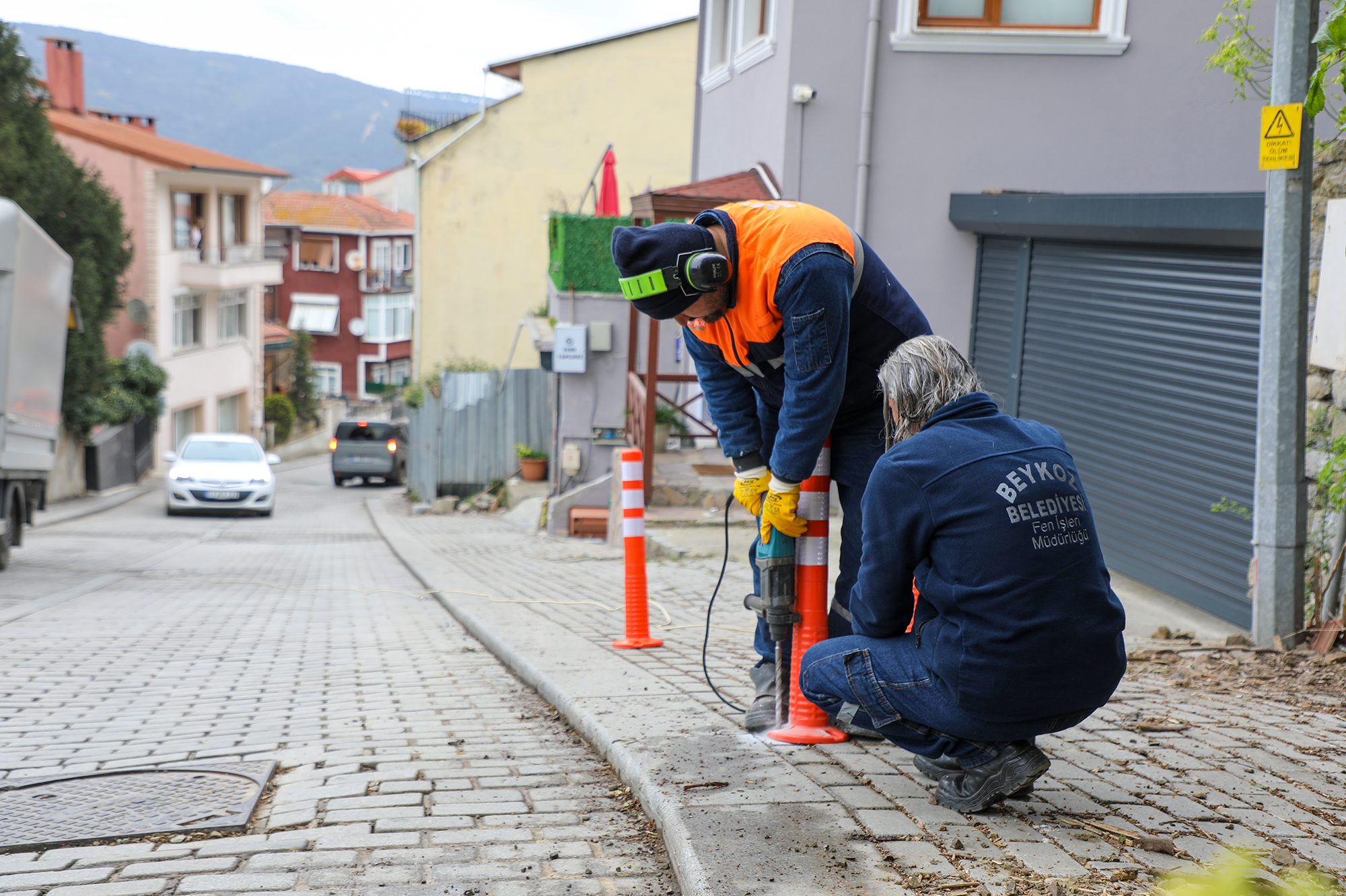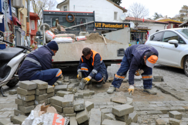 Macar Tabya Caddesi’nde taş tamiratları gerçekleştirilirken, trafik düzenini güçlendirmek amacıyla delinatör uygulamaları da hayata geçirildi. Öte yandan vidanjör ekipleri mahalle genelinde yağmur suyu ızgaralarının temizliğini gerçekleştirerek olası su taşkınlarının önüne geçti.