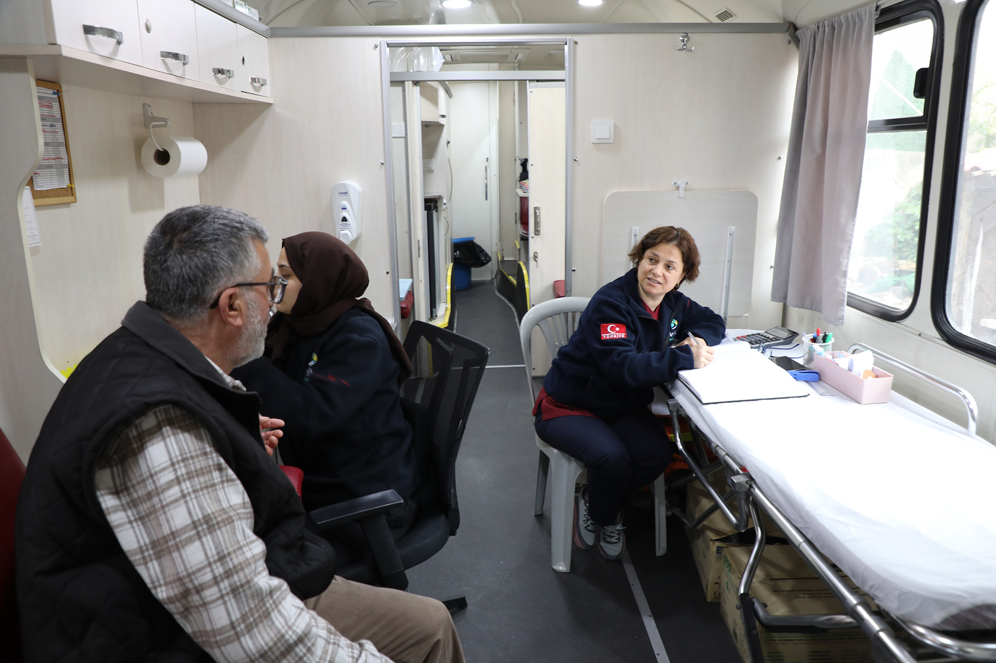 Sosyal Hizmetler Müdürlüğü ekipleri ihtiyaç sahibi vatandaşlara yönelik saha tespit ve destek çalışmalarını yürütürken, sağlık otobüsü de mahallede konumlandırılarak vatandaşlara yerinde sağlık hizmeti sundu.